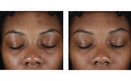 Results from a 12-week study evaluating the efficacy and tolerability of AlphaRet Clearing Serum, AlphaRet Exfoliating Peel Pads and Hydration Boosting Cream in individuals with mild-to-moderate blemish-prone skin (N=11). Unretouched clinical photography on clean, product-free skin.